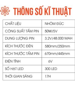 | Kích Thước Tấm Pin | 700mm/350mm |